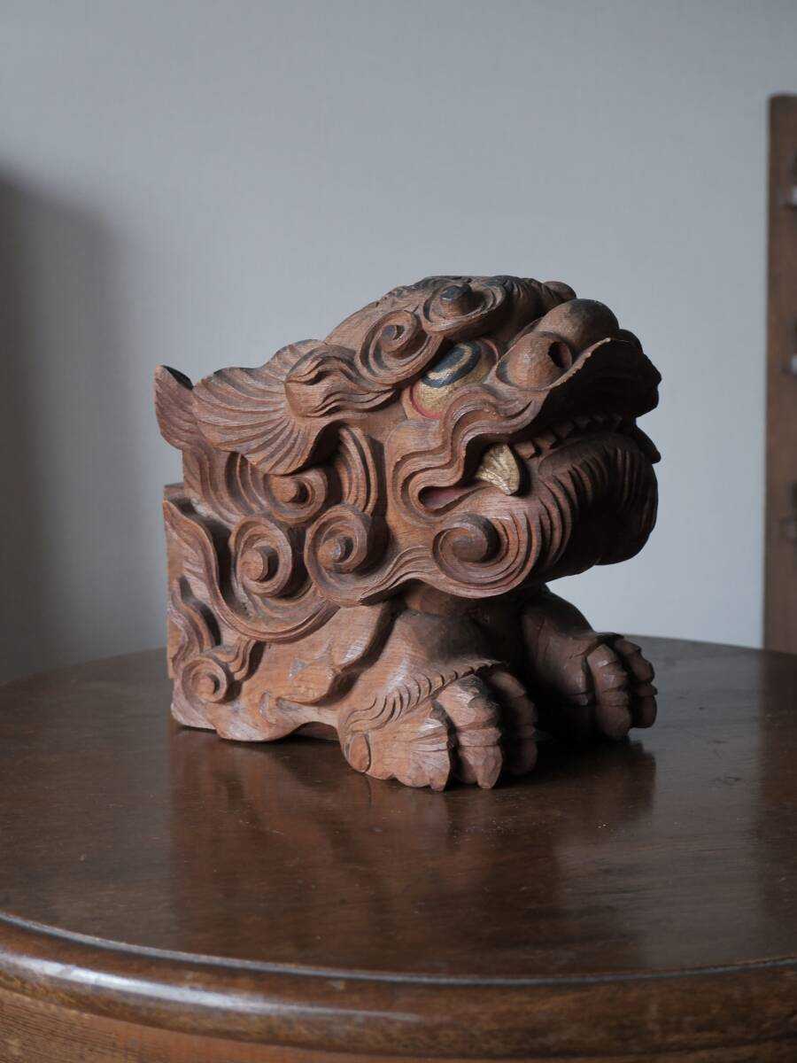 - 【青枠】木彫獅子木鼻 古材 彫刻 仏教美術 江戸期 欅 木彫 寺院仏閣 古道具 時代物 美術品