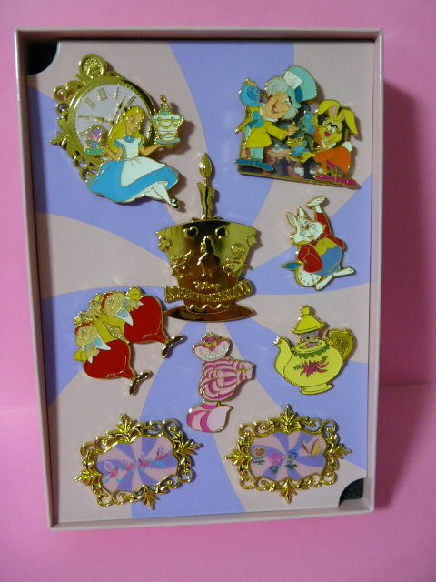 > ふしぎの国のアリス Alice in Wonderland 70th アリス チェシャ猫 マッドハッター 白うさぎ 三月うさぎ ピンバッジ