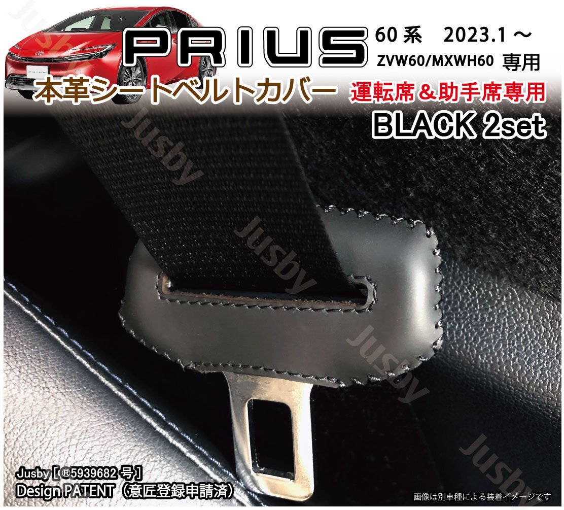 > (フロント/黒ステッチ)60系 新型プリウス PRIUS用 本革シートベルトカバー レザーカバー ドレスアップ パーツ アクセサリー 本皮