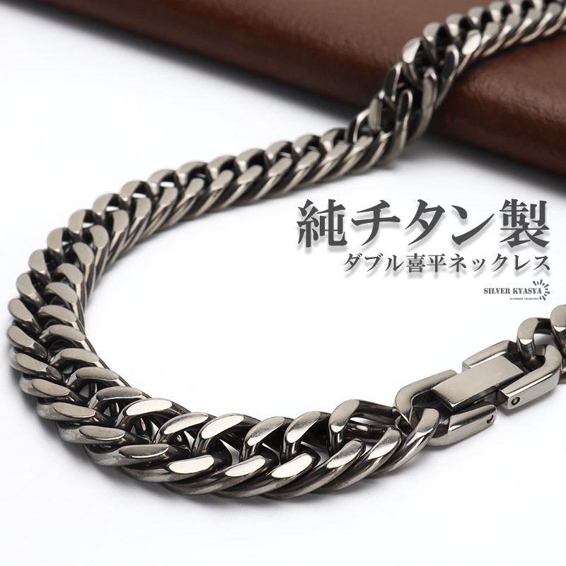 - 純チタン製 軽い ダブル喜平チェーンネックレス 喜平ネックレス 4面カット 重厚感 チタンネックレス シルバー ネックレス