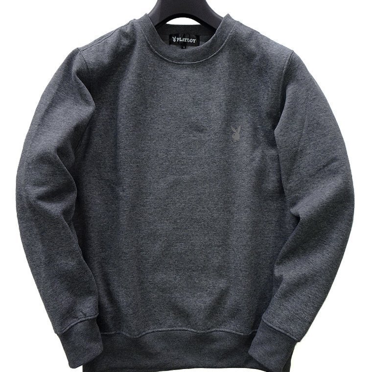 - 新品 プレイボーイ 秋冬 裏起毛 スウェット トレーナー M 灰【744014_98_M】 PLAYBOY 丸首 無地 クルーネック スエット プルオーバー