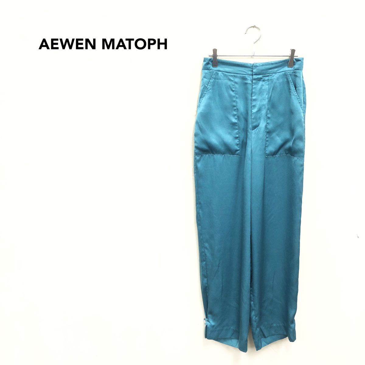 > 2K2669-K◆日本製 AEWEN MATOPH イウエンマトフ サテンワイドパンツ◆size38 グリーン 光沢 裾ボタン 薄手 カジュアル レディース