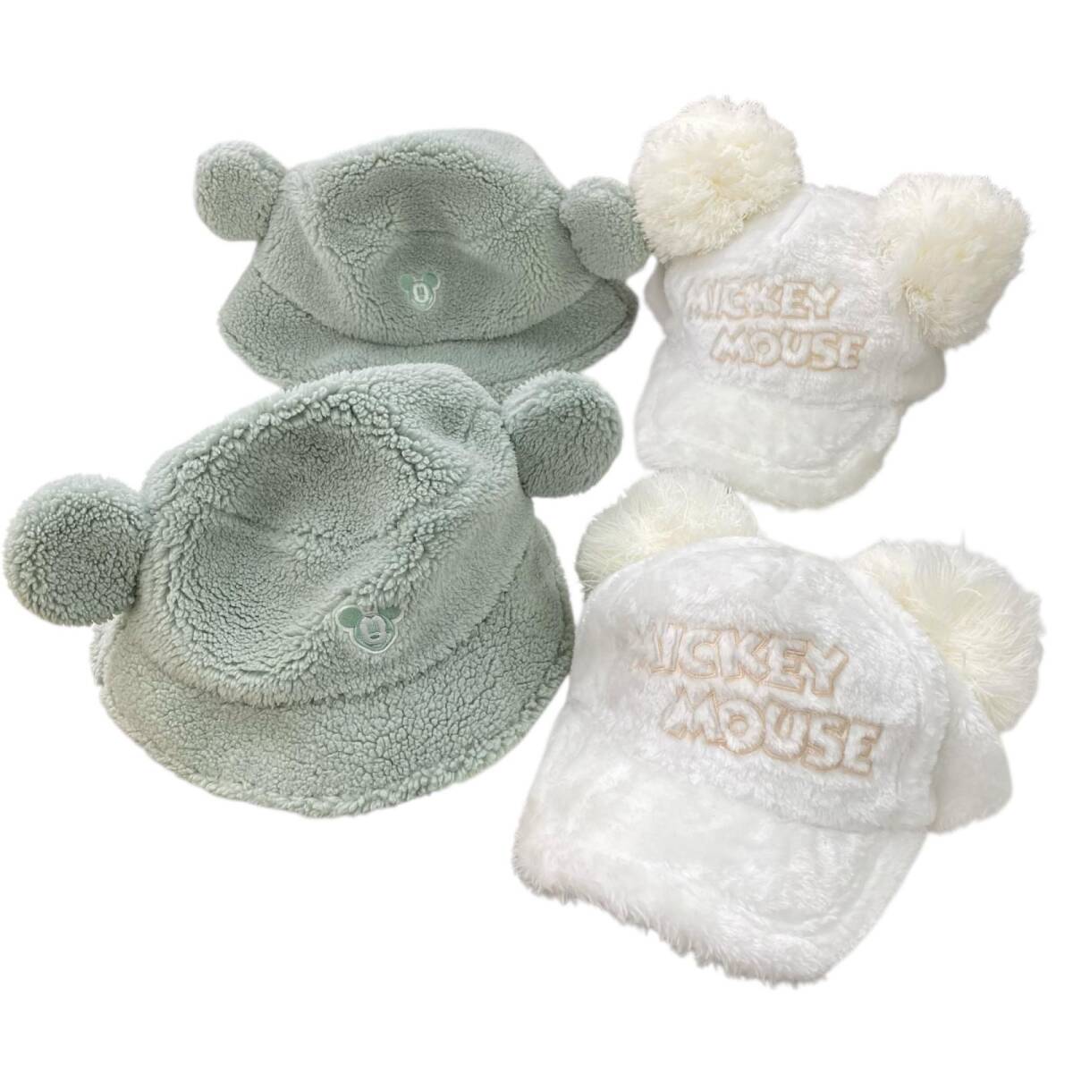 - 186000 現状品 Disney ディズニー 4点 まとめ売り バケハ ミントグリーン ボアハット ミッキー ファンキャップ 帽子 ホワイト ペアコーデ