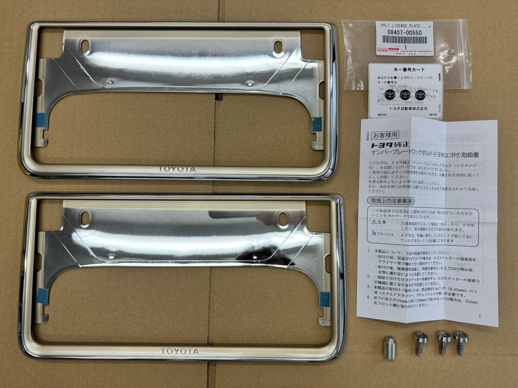 - トヨタ純正 ナンバーフレーム プレステージゴールド前後2枚 ナンバーロックボルト セット 【送料無料】【NFP+B11】