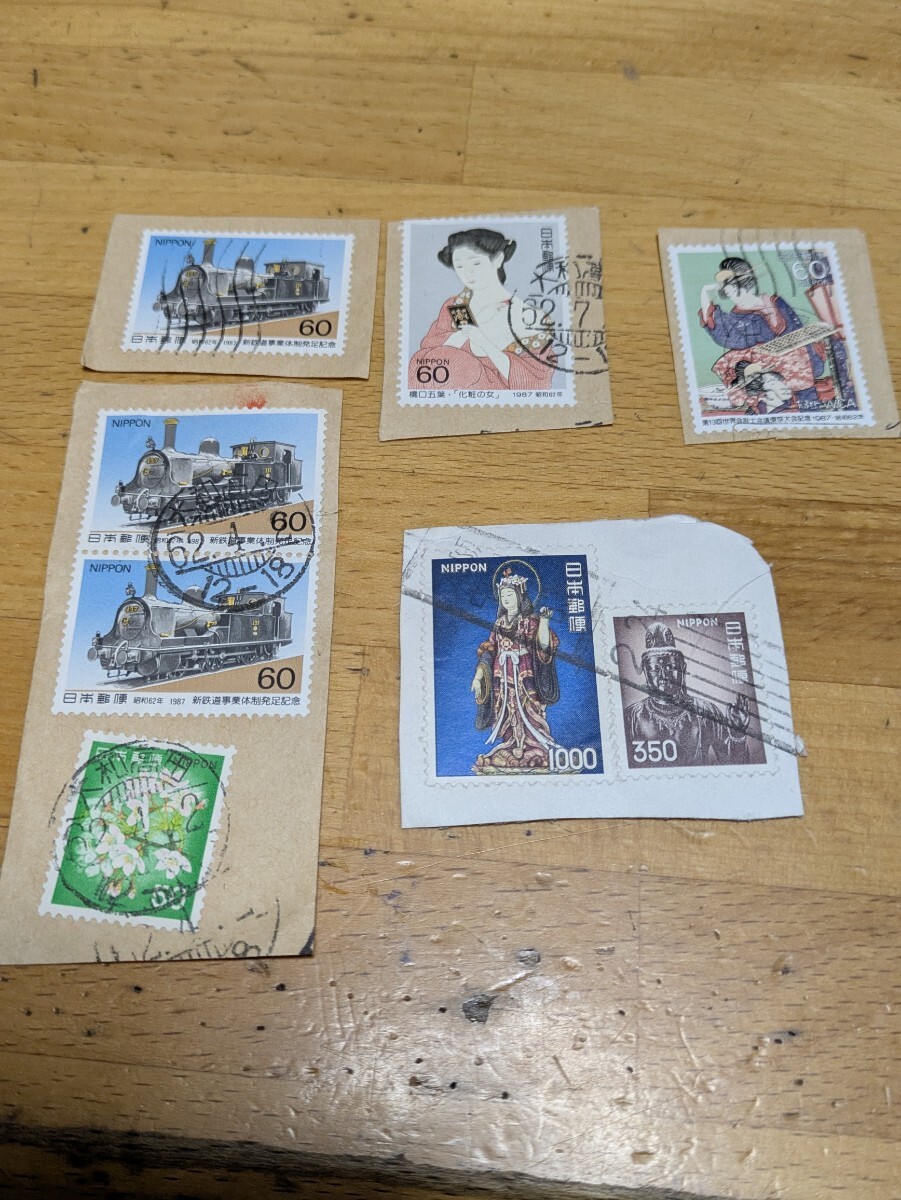 - 日本切手 鉄道 桜 橋口五葉 世界会計士会議 仏像 使用済み8枚枚セット 昭和62年