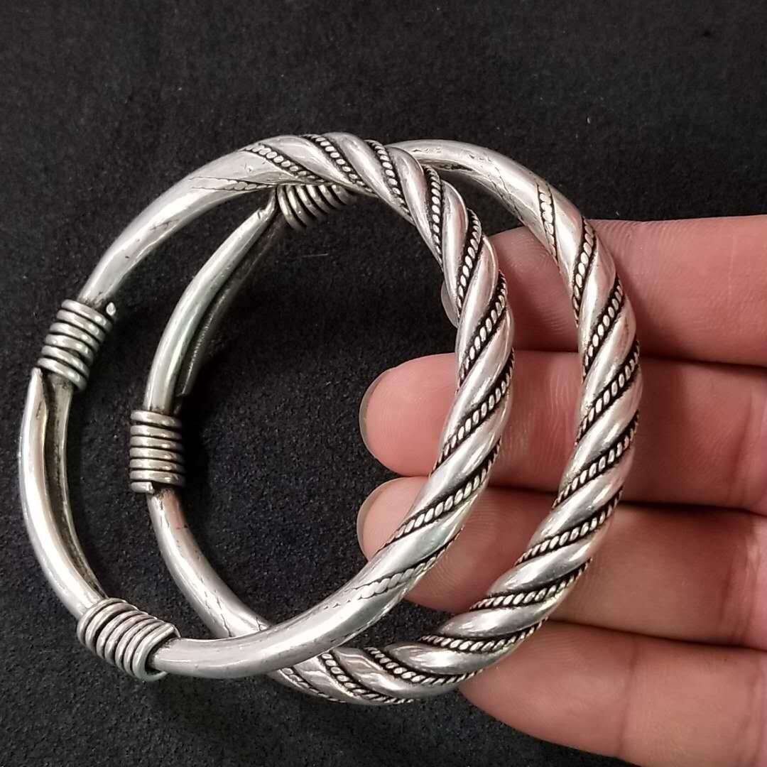 - 送料無料! 超美品! 腕輪 花紋図 浮き彫り 2個セット 装飾sux243