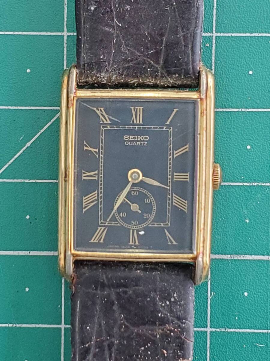 > #4264C SEIKO QUARTZ セイコー クォーツ スクエア 腕時計 レディース 3針 ブラック ゴールド 1428-5020
