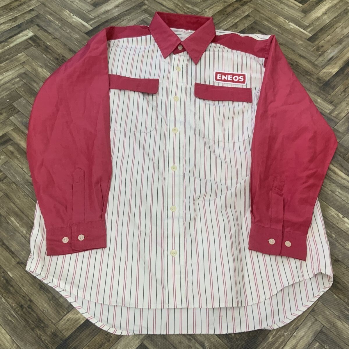- HY854 実物 エネオス ワークシャツ 作業着 レッド ホワイト L
