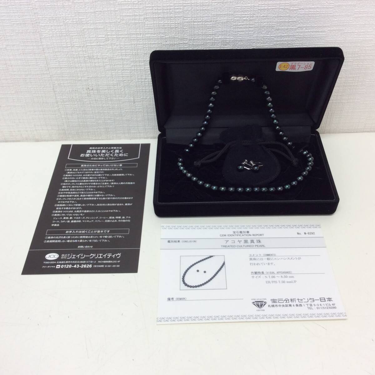 > ■4198 アコヤ 黒真珠 ネックレス イヤリング セット SILVER刻印 直径約7~8.5mm レディース アクセサリー