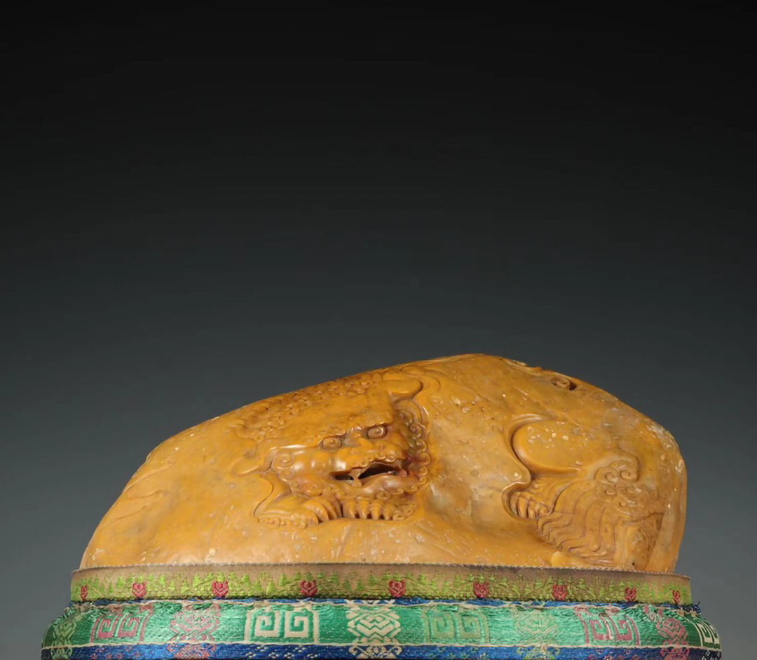 > 古石彫 寿山石 中国・近現代 【田黄石彫刻獅紋香薰爐】 文房置物 杜月笙蔵 古美術 古賞物 唐物 時代物 重1186.2g LT-2509165