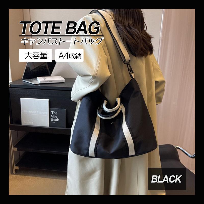 - ブラック トートバッグ ショルダーバッグ 黒 A4 大きめ 手提げ かばん