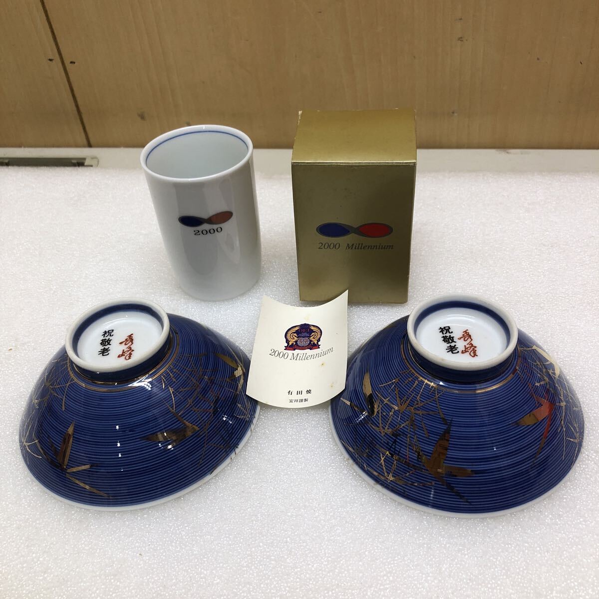 > TK5179 有田焼 宜祥 2000年 コップ 湯呑み 1客 高さ8.5cmコレクション ご飯茶碗 直径12cm 2個 昭和レトロ ヴィンテージセット 0929