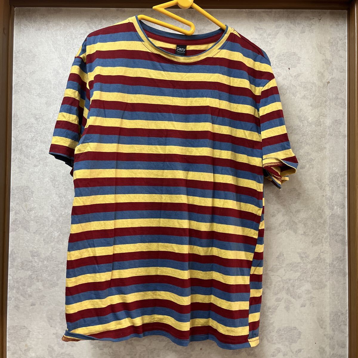 > ★Dazy★半袖Tシャツ L ボーダー柄 赤レッド黄イエロー青ブルー コットンシャツ 綿100%