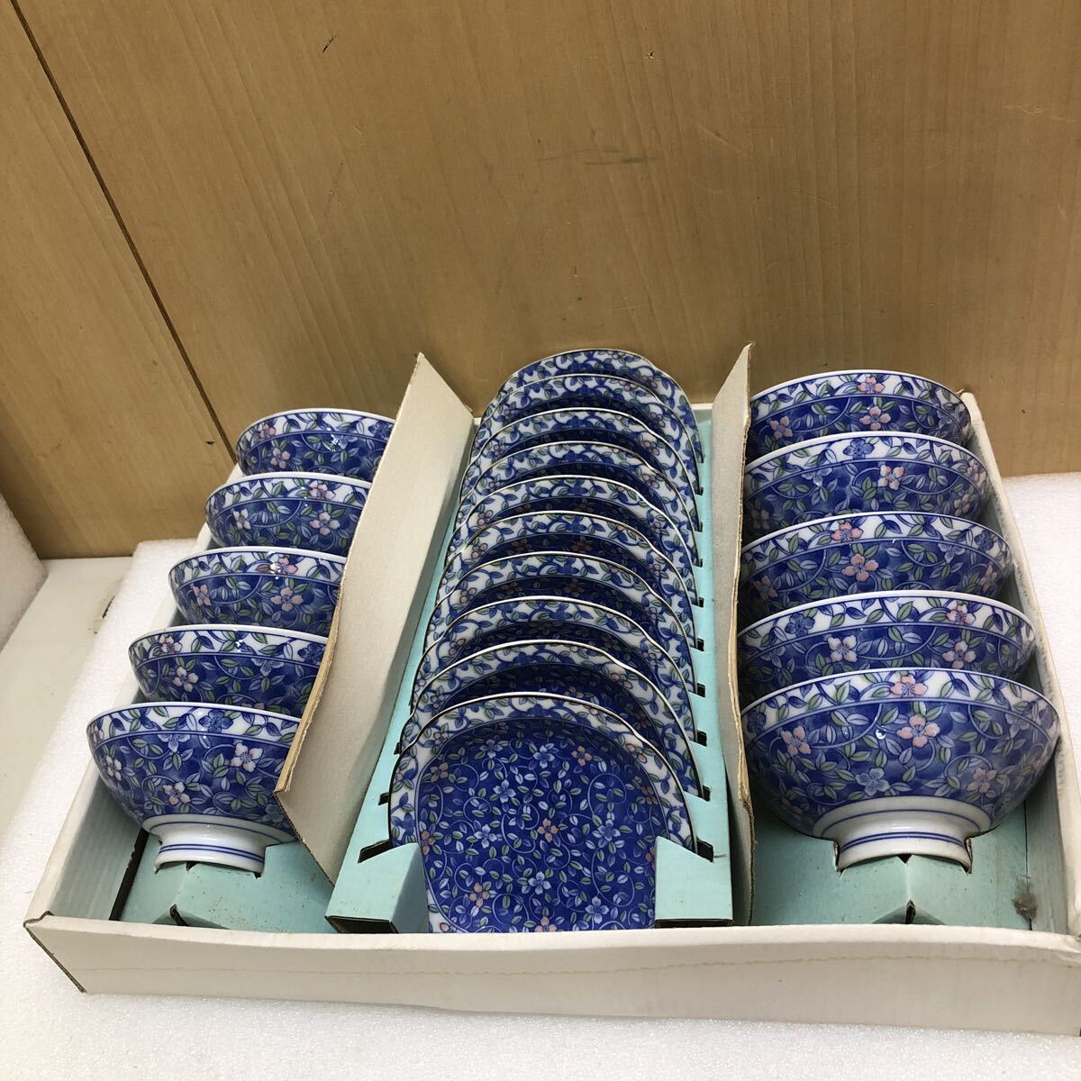 > TK5182 お茶碗10客 高さ5cmX直径11.6cm 秀峰 未使用 和柄 藍色 食器 小皿10客 直径11.5セット 0929