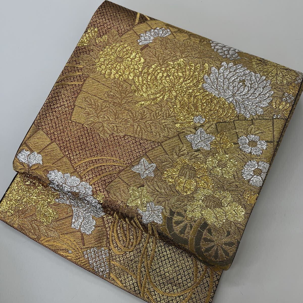 > 袋帯 本金糸 美しい花 菊 金彩 正絹 W-4470