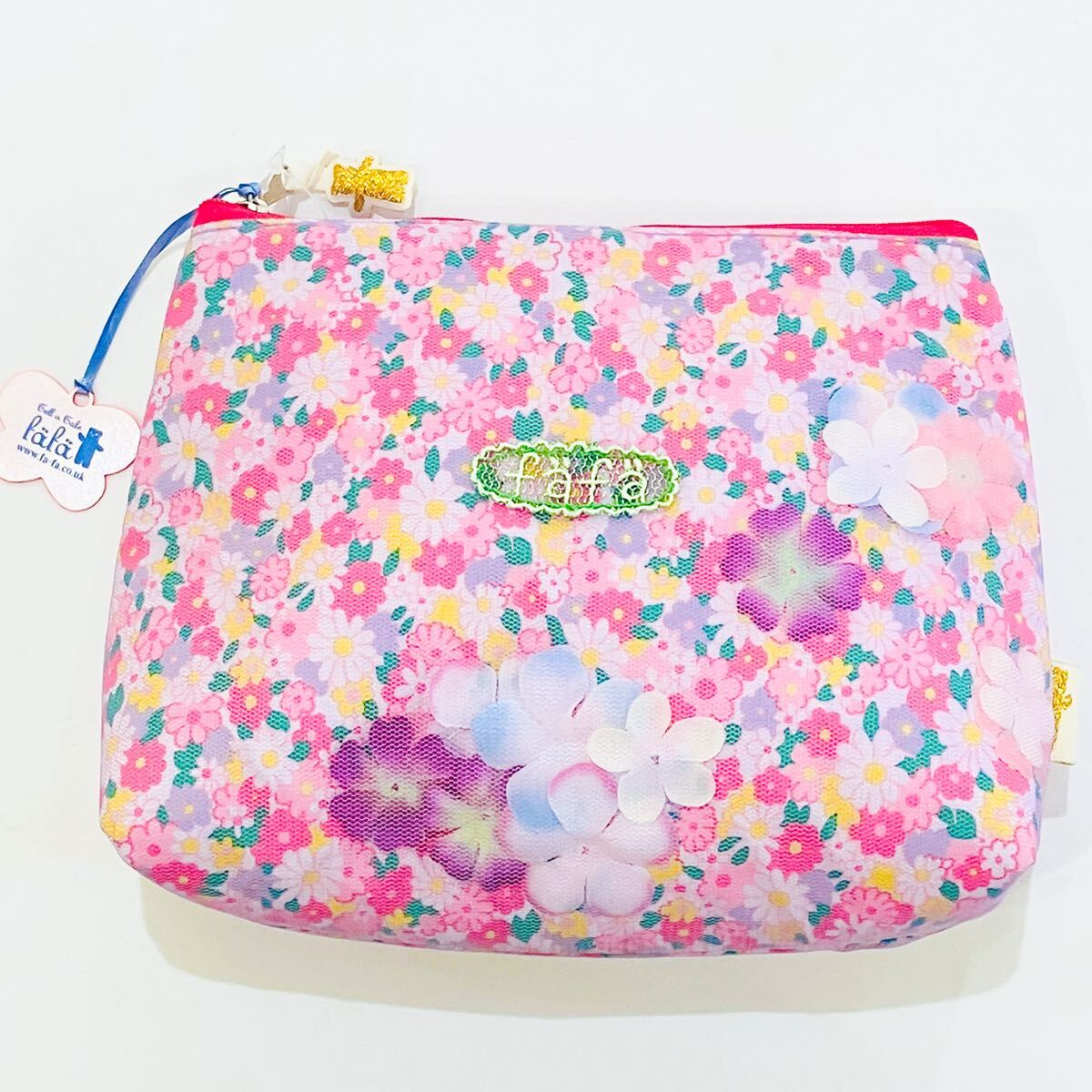 > 【新品未使用】fafa フェフェ ポーチ ベビーピンク チュールレース お花 造花 花柄 ファスナー 大きめポーチ コスメ ファンシー
