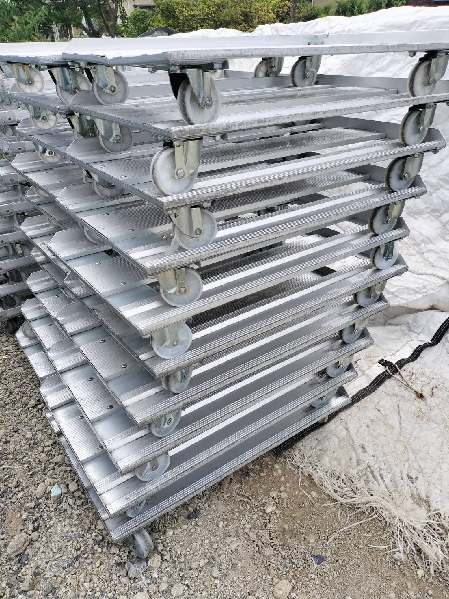 - ■アルミ 4輪台車 715×465×135mm 積重ね可能 アルミ運搬台車 業務用 大量 アルミアングルドーリー【E0623BH】