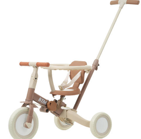 - ベージュ×ブラウン 子供用三輪車 5in1 自転車 オリジナル 押し棒付き 安全バー付き キックボード