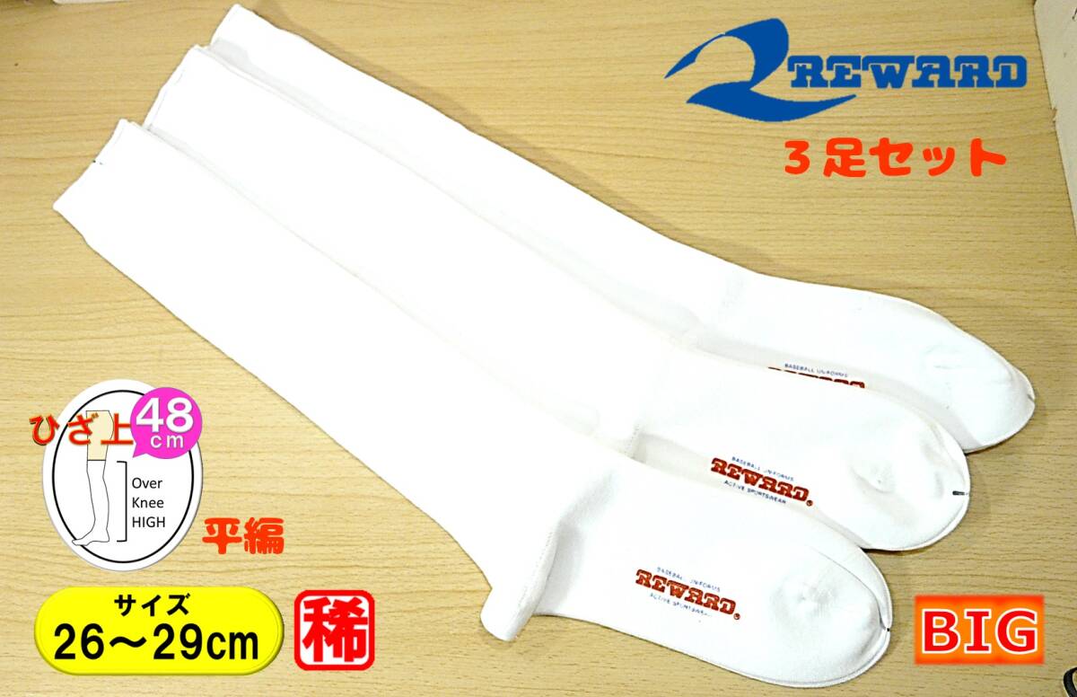 - 【未使用品★レッグウェア】REWARD◆白 ハイソックス◆アンダーソックス 3足セット◆厚手◆26-29cm◆48cm丈◆よく伸びる◆稀少◆