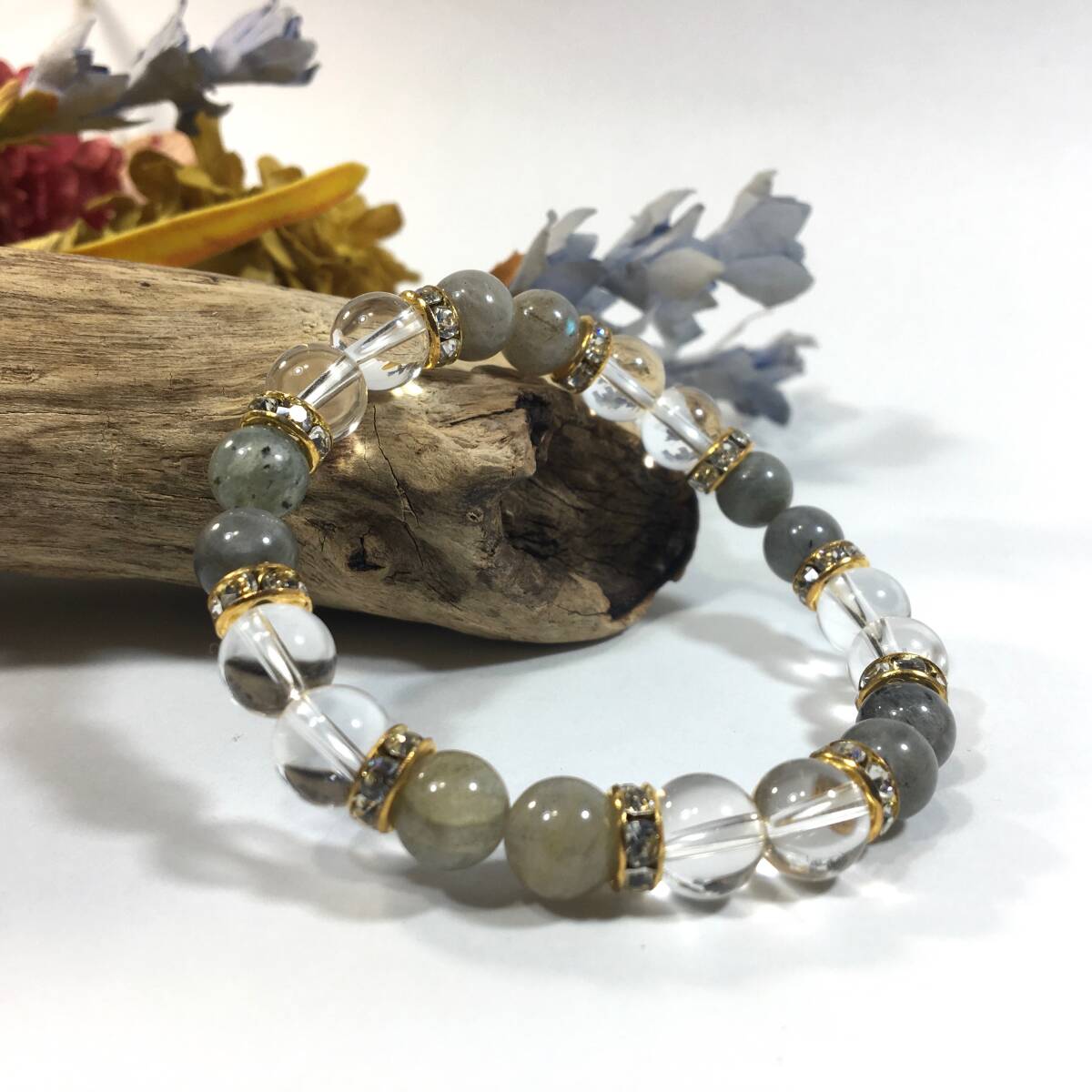 > ラブラドライト&水晶 パワーストーン ブレスレット 天然石ブレス ゴールド 8mm /開運 浄化 4月 誕生石 クリスタル レディース