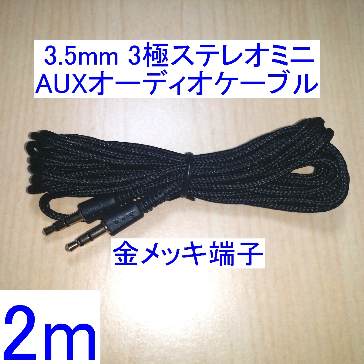 > 【送料85円~/即決】3.5mm 3極ステレオミニプラグ AUX オーディオケーブル 2m 新品 両端オス スピーカーの接続に 金メッキ端子