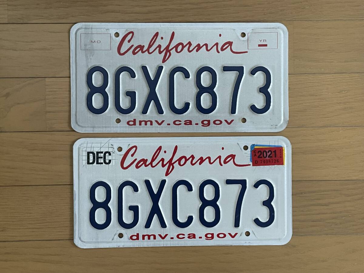 > カリフォルニア ライセンスプレート 8GXC873 2枚セット USDM 世田谷ベース 米国トヨタ シボレー フォード ロサンゼルス ナンバープレート