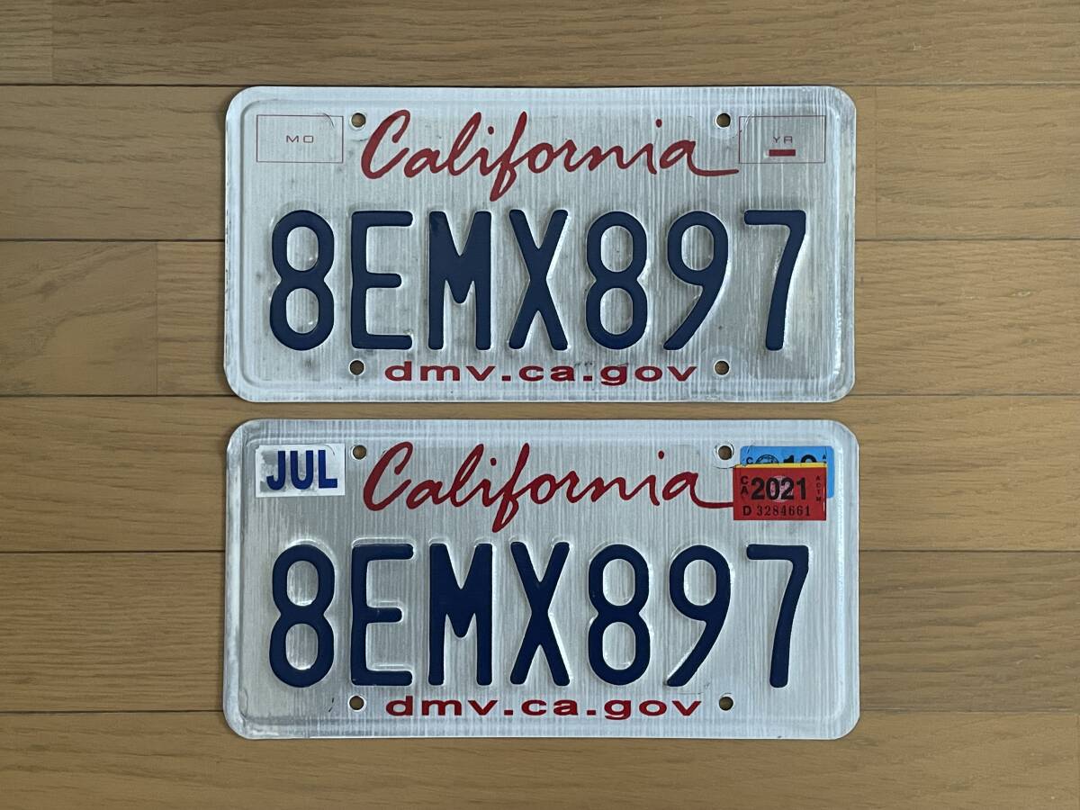 > カリフォルニア ライセンスプレート 8EMX897 2枚セット USDM 世田谷ベース 米国トヨタ シボレー フォード ロサンゼルス ナンバープレート
