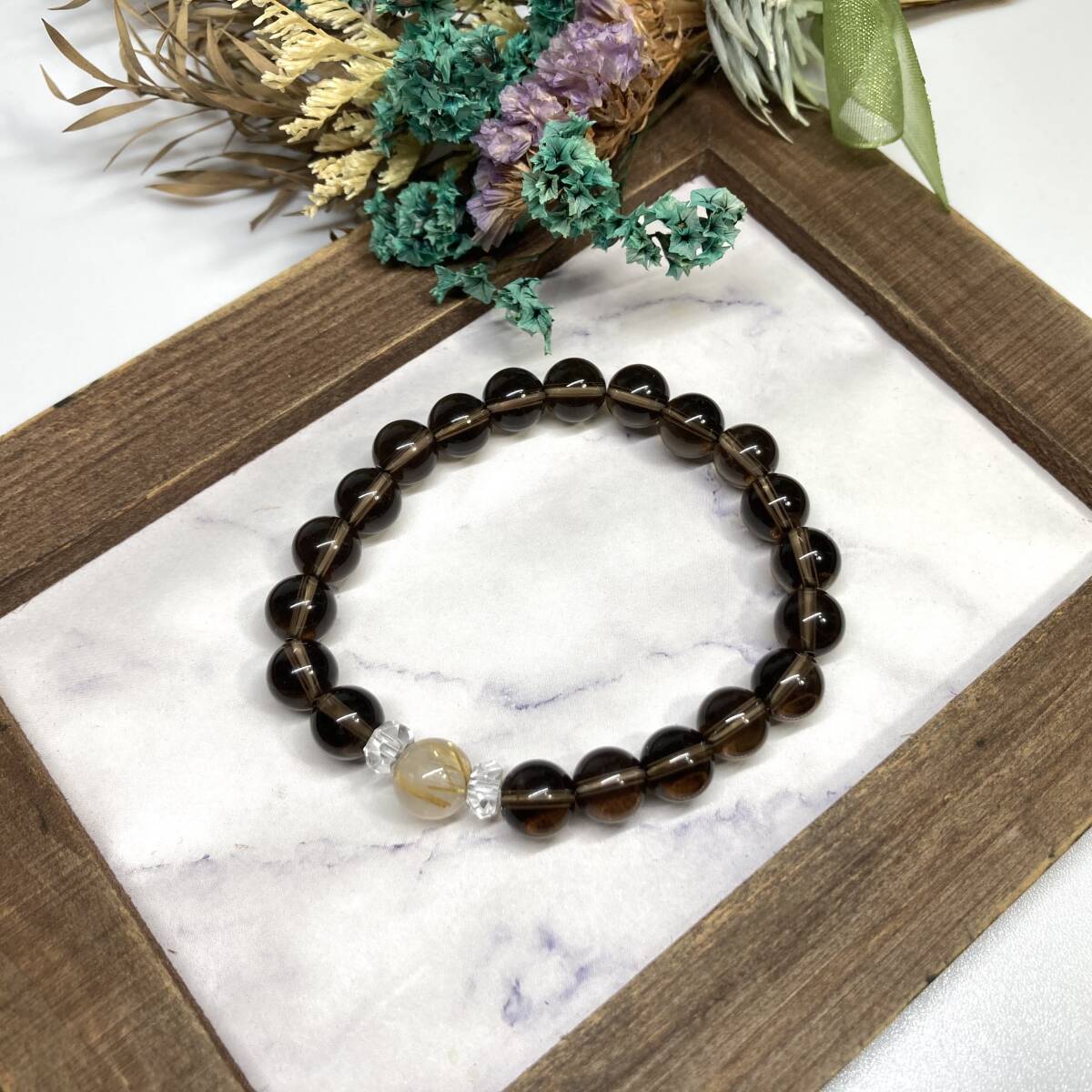 > スモーキークォーツ&ルチルクォーツ ブレスレット パワーストーン レディース 女性 金運 仕事運 開運 数珠ブレス お守り
