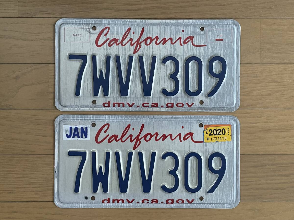 > カリフォルニア ライセンスプレート 7WVV309 2枚セット USDM 世田谷ベース 米国トヨタ シボレー フォード ロサンゼルス ナンバープレート