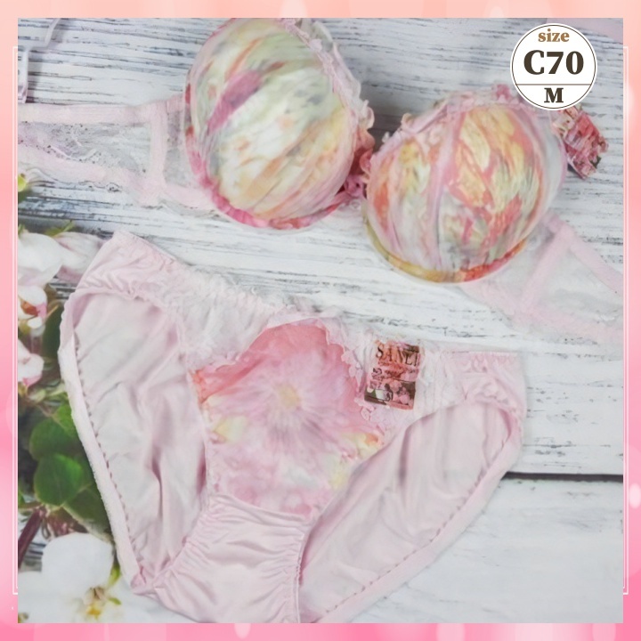 - Zc7001◎新品 ブラショーツセット【C70/M】下着 ランジェリー Wパッド 厚盛 マーブル模様 ピンク