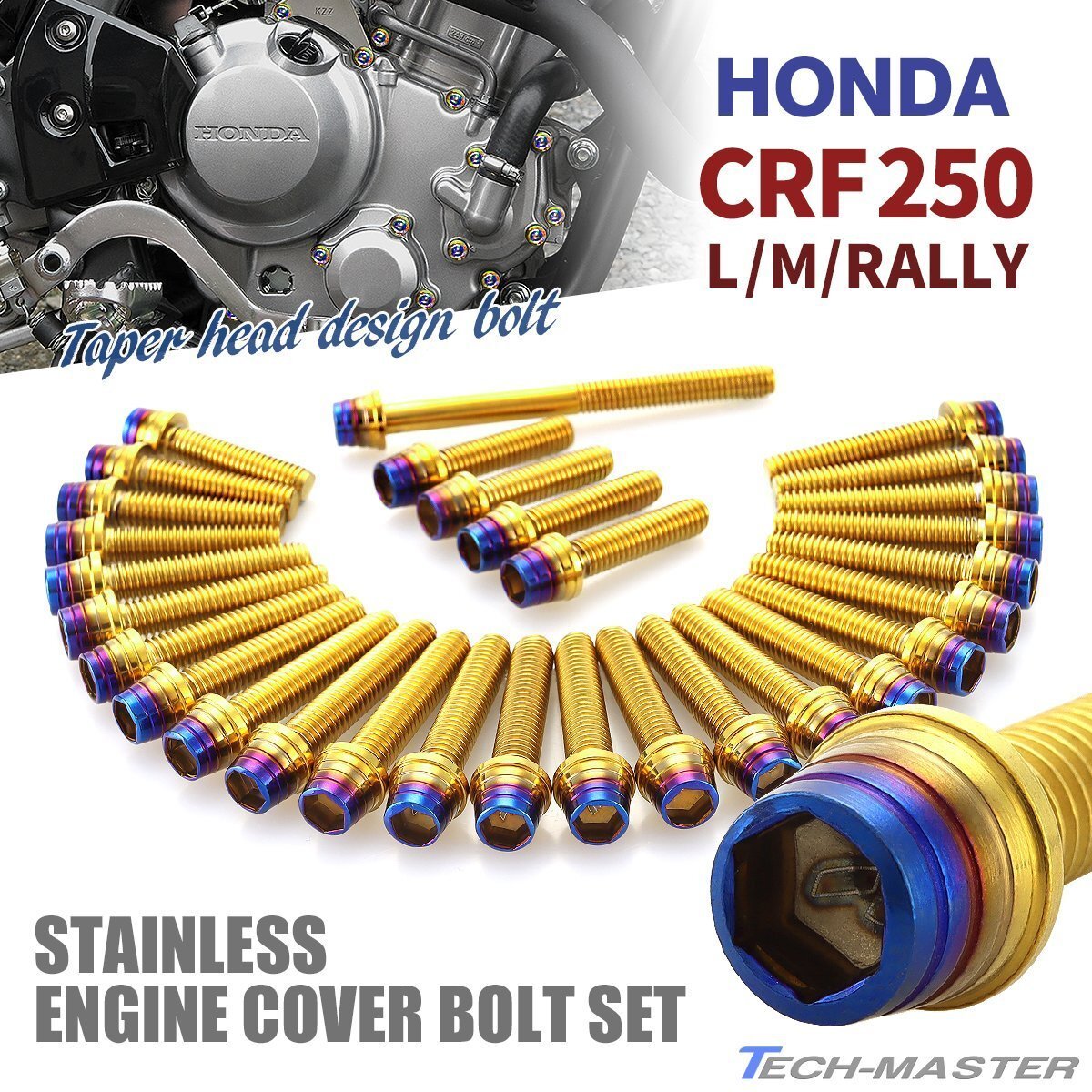 - CRF250/L/M/RALLY エンジンカバー クランクケース ボルト 30本セット ステンレス製 ゴールド×焼きチタンカラー TB6582