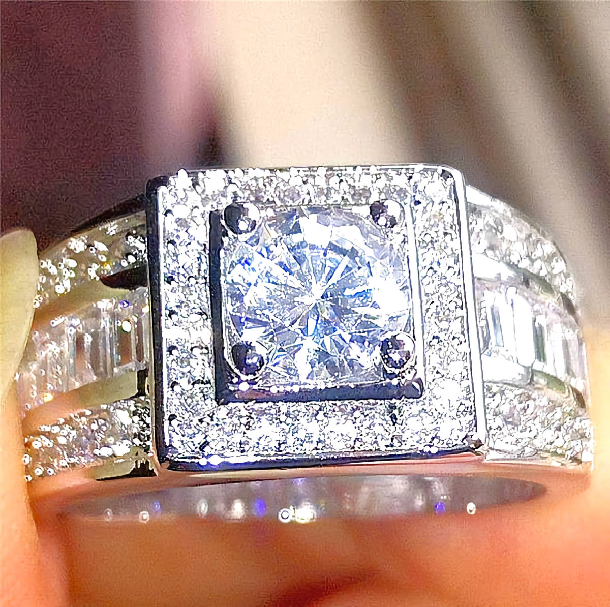 - 新品1円~★送料無料★七色の光スクエアダイヤモンドヘビー プラチナ仕上 925シルバーリング誕生日プレゼント旅行秋祭冬連休ギフト国内発送