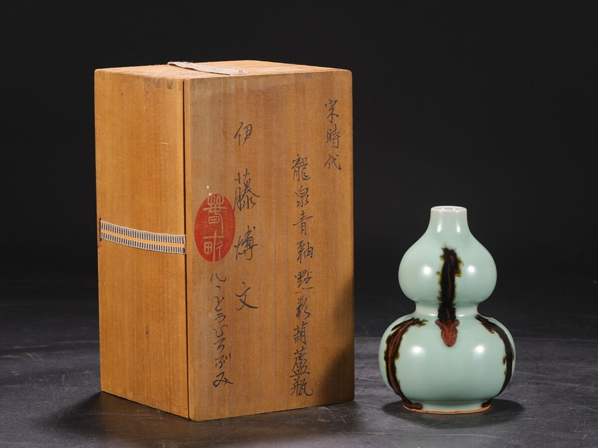 - 「宋 龍泉窯 陶磁器 青釉點彩 葫蘆瓶」染付 置物 擺件 古賞物 中国古美術 旧蔵出