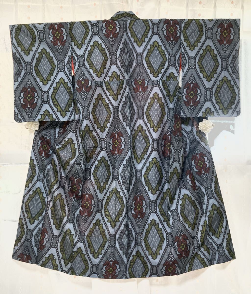 - 2509t495 着物 正絹 菱紋様 仕付け糸付き 未使用