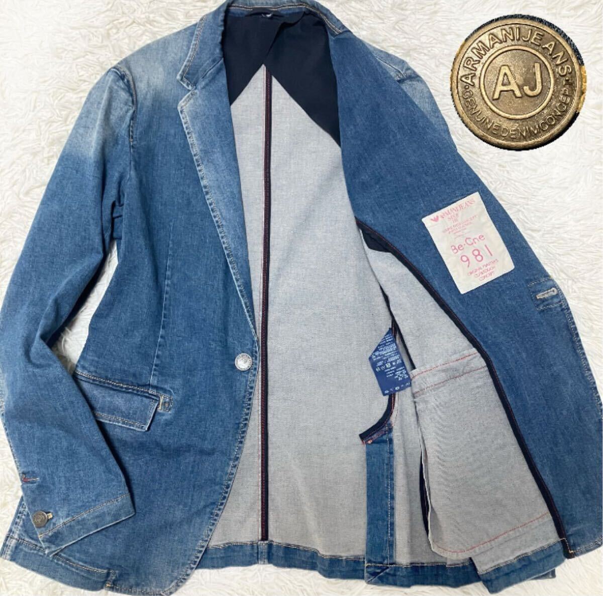 - 未使用級 ARMANI 50 XL相当 アルマーニジーンズ デニム テーラード ジャケット 希少大きいサイズ ストレッチ インディゴブルー 近年モデル