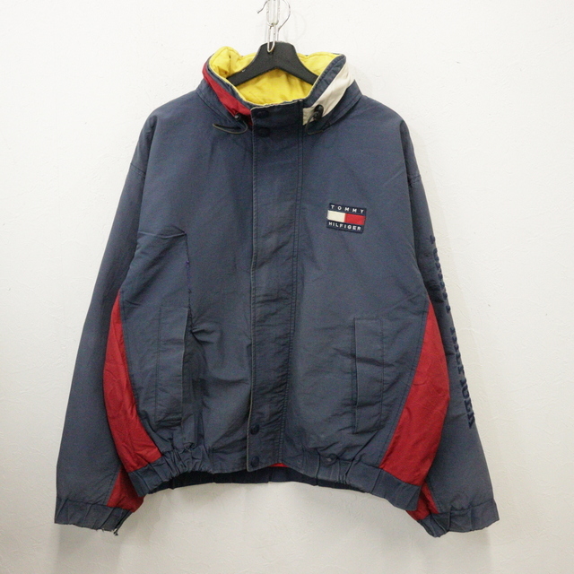 - H953 90sビンテージ TOMMYHILFIGER ブルゾンジャケット■1990年代製 表記Lサイズ ネイビー 2トーンカラー アメカジ ストリート 古着 古着卸