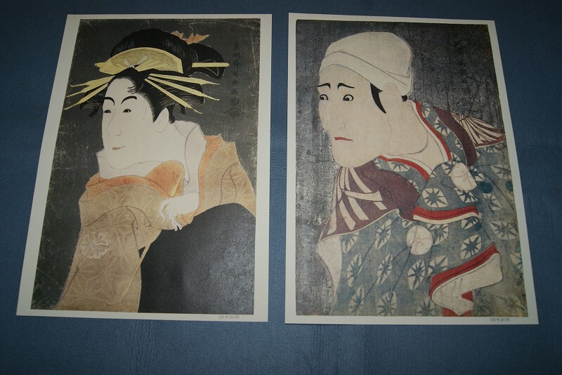 - B73★復刻版*浮世絵2枚「三代目・八代目森田勘弥*松本米三郎」東洲斎 写楽・印刷物/読売新聞額絵