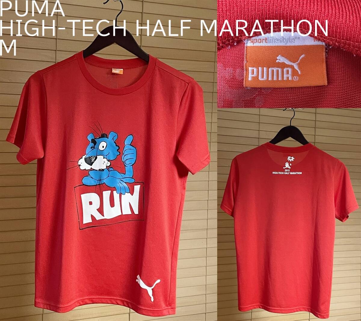 > 【必見です。激安1点のみ】PUMA プーマ HIGH-TECH HALF MARATHON ハイテク ハーフ マラソン RUN 半袖 Tシャツ M レッド系 ポリエステル100%