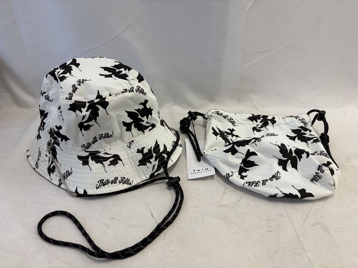 - TAIN DOUBLE PUSH バケットハット&巾着バッグセット ブラック×ホワイト Mサイズ