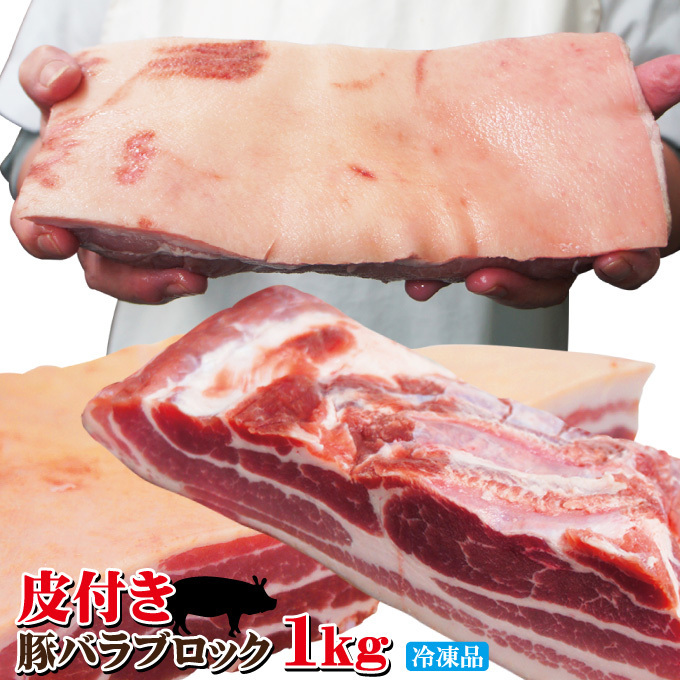 > 皮付き豚バラブロック1kg冷凍 手にはいらない希少3枚肉 角煮や東坡肉【サムギョプサル】【国産に負けない味わい】【ばら肉】【ベーコン】