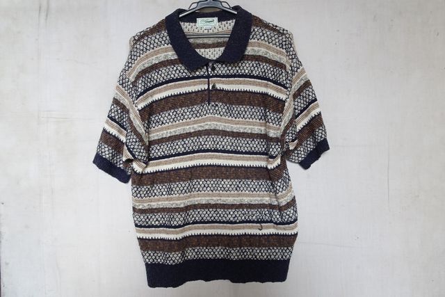 - Crocodile/クロコダイル/半袖ニットポロシャツ/様々な編み柄/ボーダー柄/紺/ネイビー/茶/ブラウン/白/ホワイト/Mサイズ(9/30R7)