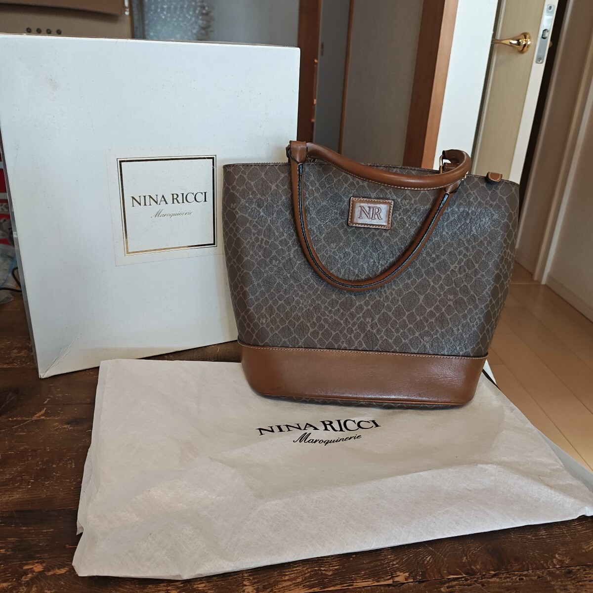 > 93026 日本古風堂 ニナリッチ トートバッグ ジラフ柄 PVC/レザー ハンドバッグ ブランド 鞄 カバン レディース ブラウン NINA RICCI