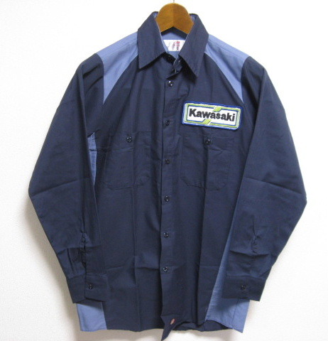 - KAWASAKI カワサキ 長袖 メカニック ワークシャツ REDKAP アメリカ古着