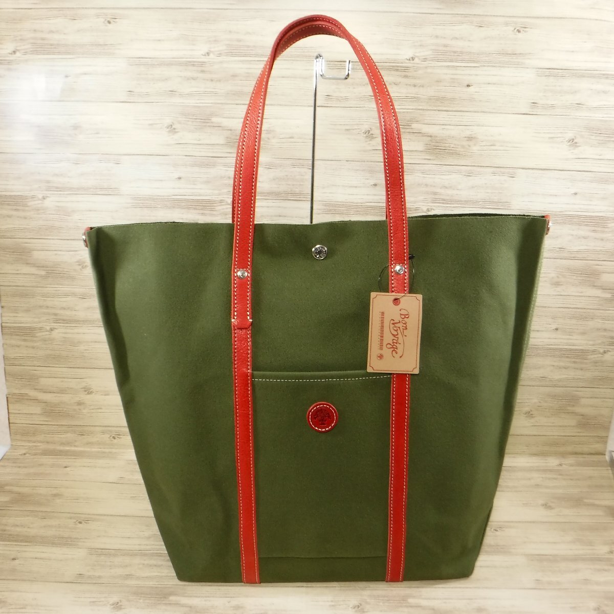 > BB680 木の庄帆布 定価1万6280円 新品 栃木レザー & 帆布 セルヴィッチ トートバッグ 大容量 B4 日本製 カーキ × 赤 メンズ レディース
