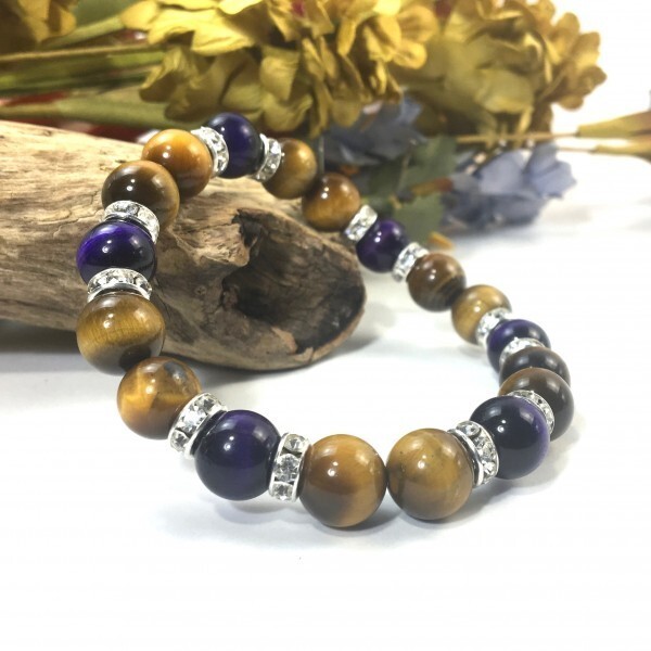 > タイガーアイ×パープルタイガーアイ パワーストーン ブレスレット (シルバー) 10mm メンズ・レディース 金運 仕事運 願望成就