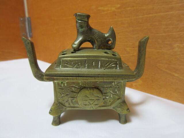 - 香炉 工芸品 狛犬 仏具 真鍮製 多分未使用か