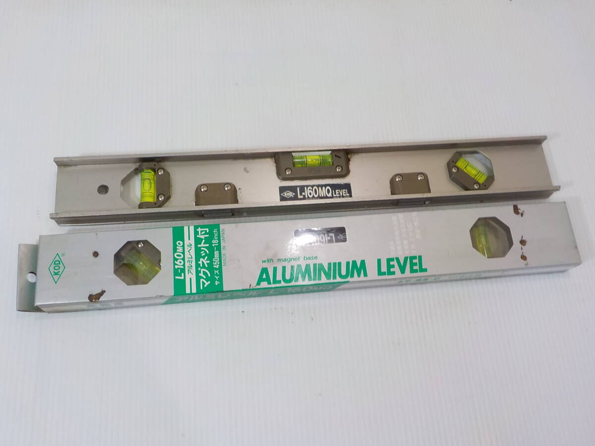 - d574★KODアルミレベル L-160MQ 450mm マグネット付 2個まとめて 未使用と中古 水平器