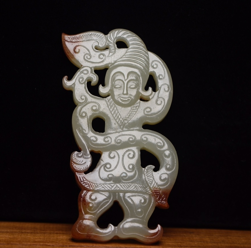 - 『館蔵珍品 和田玉製 細密彫 無人 置物 賞物』文房具 書道品 貴重物品 収蔵品 中国古美術 時代物 古董品
