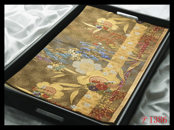- 蔵【テ1386】西陣逸品 振袖可 枝垂れ桜紋 根岸色地 気品豊かに 正絹純金糸六通高級美術袋帯 ◇検◇簪着物名古屋帯和装小物帯締め