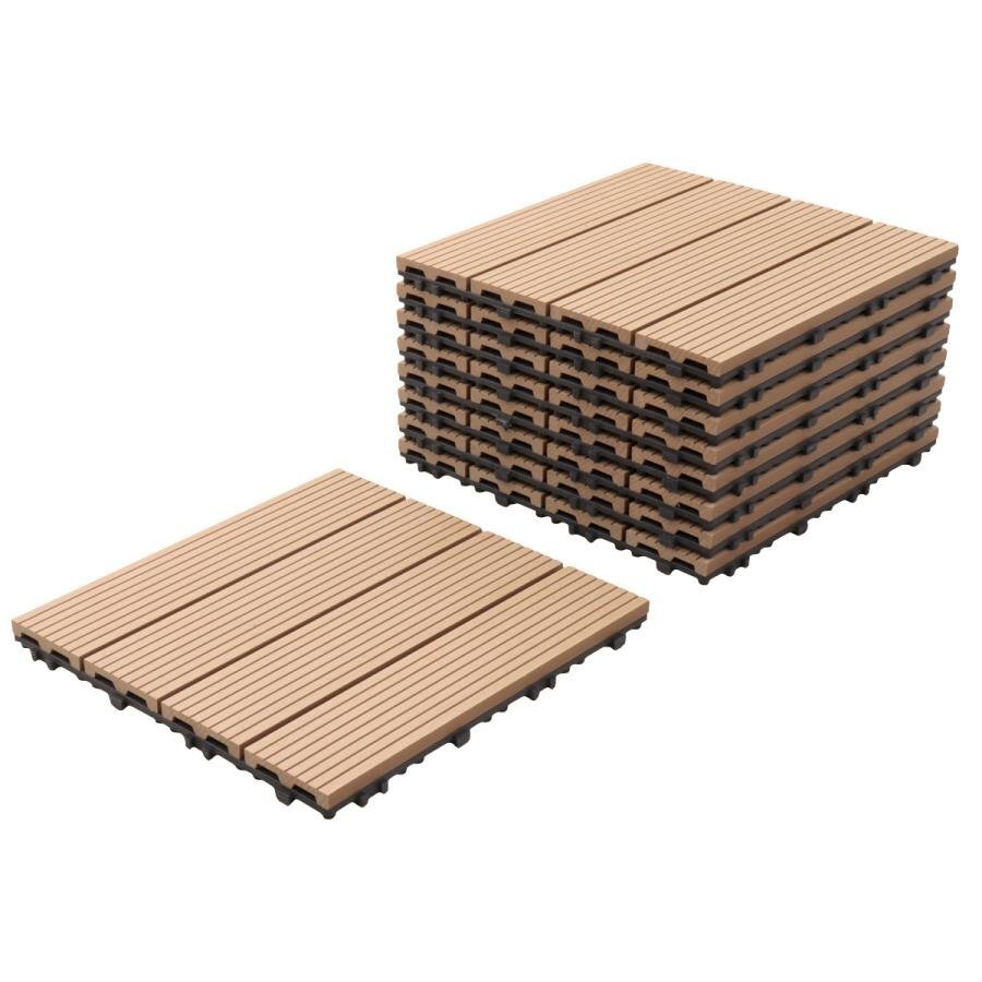 - ウッドパネル ウッドデッキ 人工木 ベランダ 9枚セット パネル ジョイントパネル 庭 タイル 置くだけ 腐らない ウッドタイル